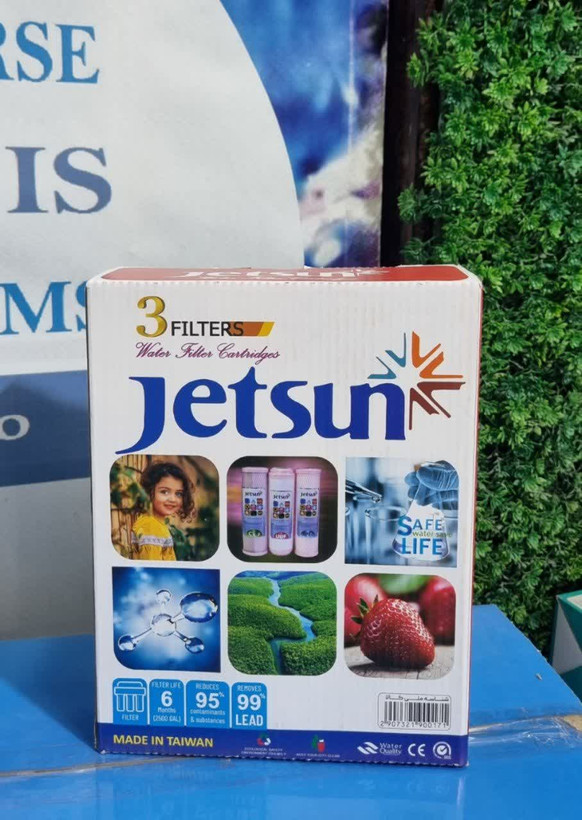 پک فیلتر ۳ تایی دستگاه تصفیه آب برند جتسون (Jetson) ساخت تایوان، شامل فیلترهای پیشتصویه باکیفیت است که وظیفه حذف ذرات معلق، گل و لای، کلر، بو و طعم نامطبوع آب را بر عهده دارند. این مجموعه مخصوص انواع دستگاههای تصفیه آب خانگی با استاندارد جهانی ۱۰ اینچ طراحی شده است و به افزایش عمر فیلترهای اصلی و عملکرد بهتر دستگاه کمک میکند.